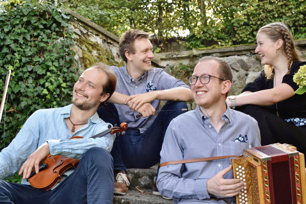 Die vier Volksmusikanten Andrea Küttel (Jodel), Florian Gass (Schwyzerörgeli), Emmanuel Krucker (Hackbrett) und Augustin Martz (Violine) machen spezielle und geheimnisvolle Klänge in ihrem Ensemble Quarz, das sich während ihres Volksmusik-Studiums in Luzern gefunden hat. Sie verbinden traditionelle Klänge mit neuen Ideen und Einflüssen von Jazz und anderen Traditionen und bringen alle auch ihre eigenen Kompositionen ins Repertoire mit ein. Wie ein Bergkristall, der immer wieder in neuem Licht erstrahlt und auch gerne in einem Sack über Grenzen getragen wird…